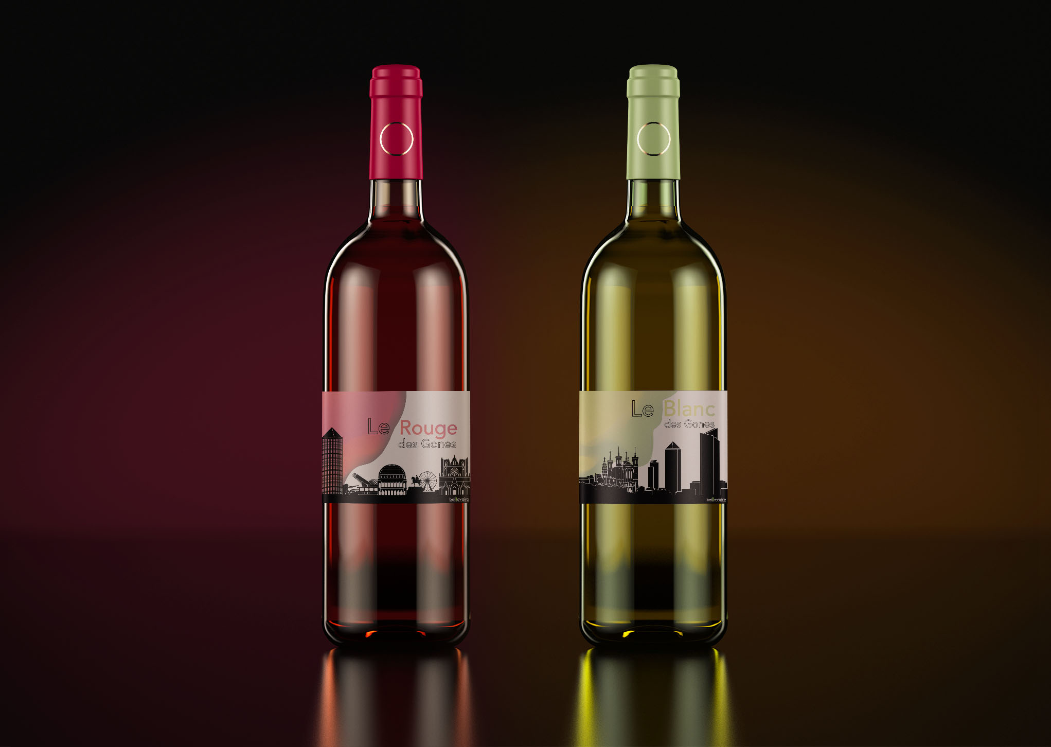 Conception des étiquettes de vin pour "Le Rouge des Gones" et "Le Blanc des Gones" dans le cadre de mon stage chez Beillevaire.